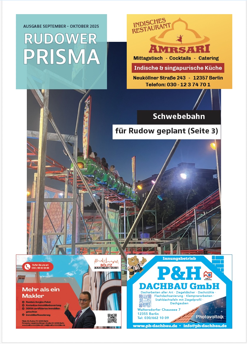 Hier finden Sie die Online-Ausgabe des Rudower Prisma für die Monate September und Oktober 2024. Wir wünschen Ihnen viel Freude beim Lesen!